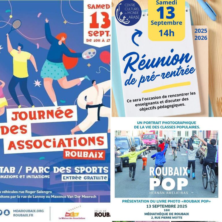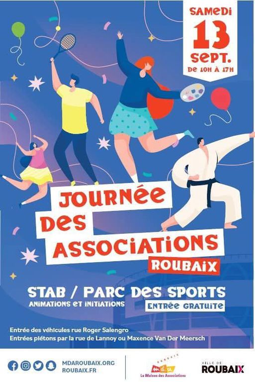 - Journée des Associations au STAB / Parc des Sports de 10h à 17h – animations, initiations et rencontres avec le tissu associatif roubaisien.