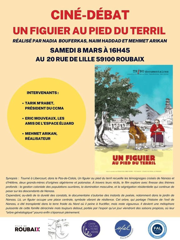 Une Projection organisée avec le Centre Culturel Monde Arabe, les Amis de l'Espace Éluard et l'UFAL de Lille.
