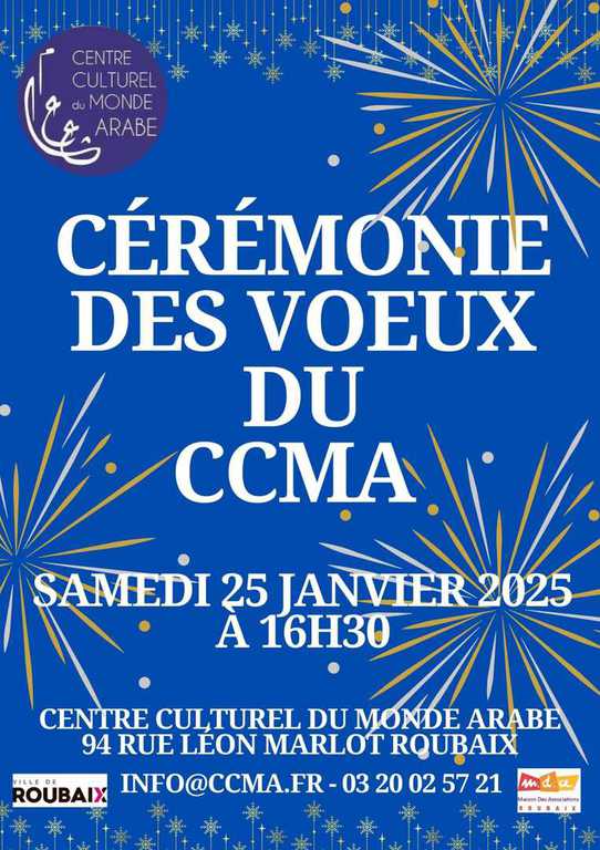 Cérémonie des vœux du CCMA, à 16h30, à la salle Lafage, 94 rue Léon Marlot à Roubaix.