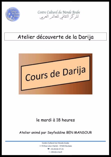 L'atelier découverte de la Darija se déroule le mardi de 18h à 20h au CCMA.